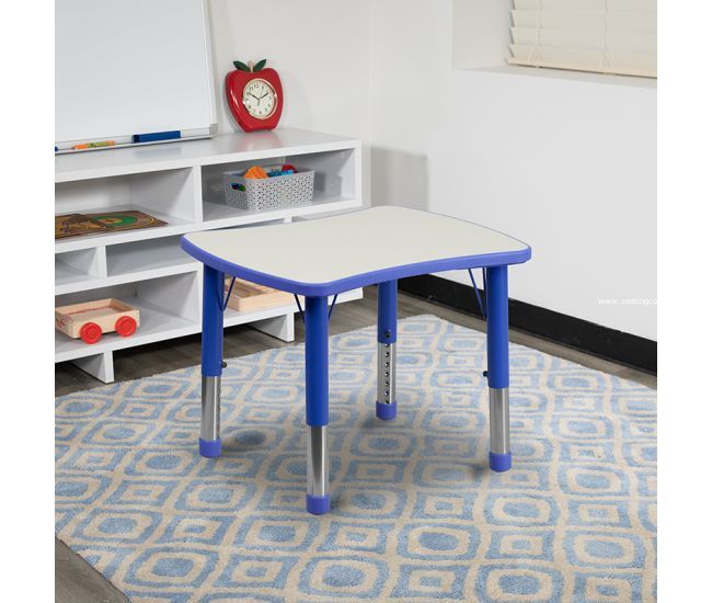 Give your classroom a boost with multi-purpose kids tables for learning, crafting and snack time. Perfect as a classroom table, the safety rounded corners reduce injury around rambunctious toddlers. The laminate top and plastic edge material blend seamlessly. The neutral tone focuses children on learning assignments. Adjustable height legs give you the flexibility to raise or lower to accommodate kids up to the age of 7. Children appreciate having their own area within the common areas of the home. This activity table serves as a play table or kids dining table. Host cheerful birthday and dinner parties around this rectangular plastic table that accommodates up to 4 kids on each side. Don't let spills ruin the fun, the low maintenance top with its adorable shape is easy to clean. Boasting a neutral finish this play table is suitable for girls and boys. This plastic table is heavy-duty for use in preschools, daycares and playrooms. Pair with our natural plastic stackable school chairs for a complete table and chair ensemble.
