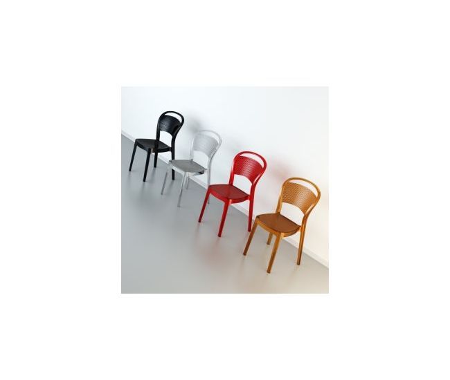 Bee Polycarbonate Indoor/Outdoor Dining Chair. Modern contemporary design. Can be used both indoors and outdoors. Scratch resistant. Commercial grade polycarbonate resin. Strong legs and structure. Stackable. Very elegant. Designed by ILANIT OVADYA.