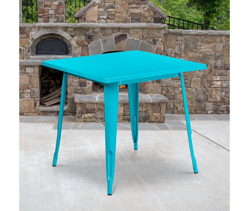 Commercial Grade 31.5" Square Crystal Teal-Blue Metal Indoor-Outdoor Table
