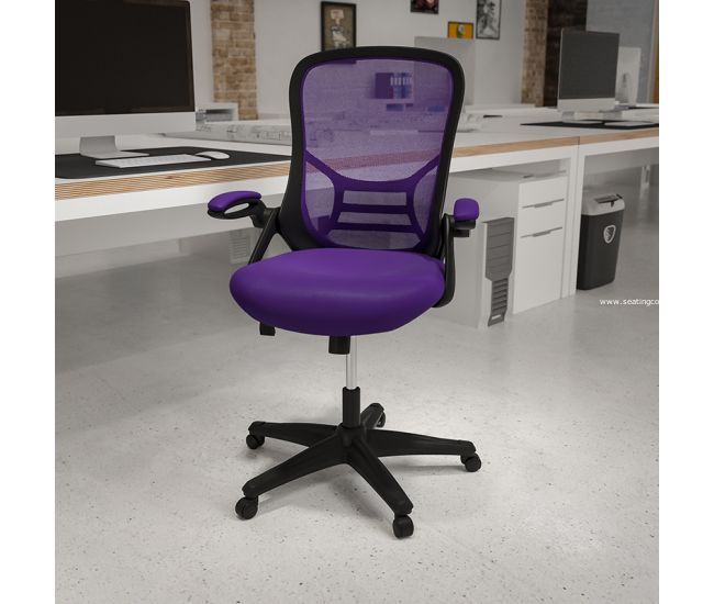 Fall into comfort on this ultra-padded swivel office chair that'll add personality to your home office or professional office space. Put that old chair to rest, having the support of an ergonomic office chair will help improve your attitude when you no longer must sit in discomfort. This modern office chair is equipped with a lever to control the seat height and activates the seat recline. Mesh office chairs are popular due to their ventilated mesh material that allow air to circulate to your back, keeping you cool and calm. Paired with a contoured padded seat with pressure relieving waterfall edge and a high back this executive office chair will integrate into any space. If you like working with your chair raised high a flip-up arm chair is perfect allowing you to flip the arms upward like an armless chair while pulling yourself close to your desk. You'll have no problem taking charge of your workday perched on this high back ergonomic office chair with flip-up arms. You'll wish you had purchased this chair sooner, whether as a personal purchase or to accommodate your entire staff.
