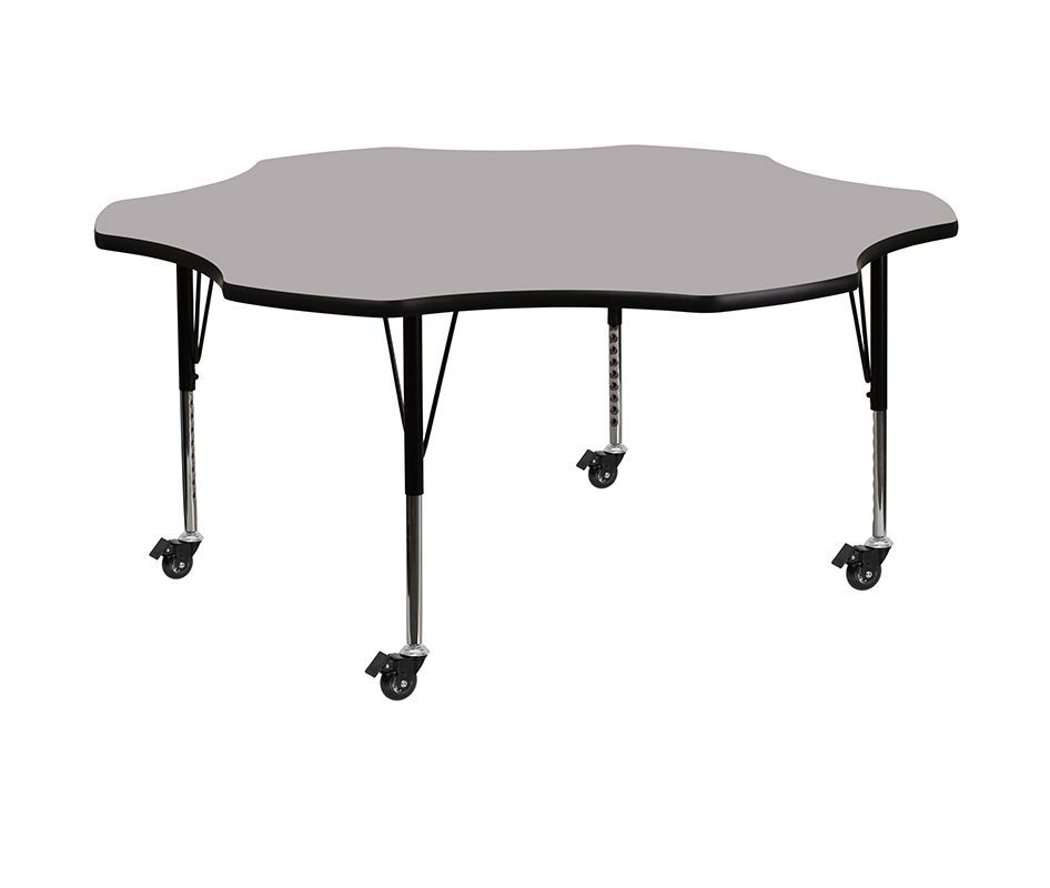 Mobile 60'' Flower Grey Thermal Laminate Activity Table - Height Adjustable Short Legs
