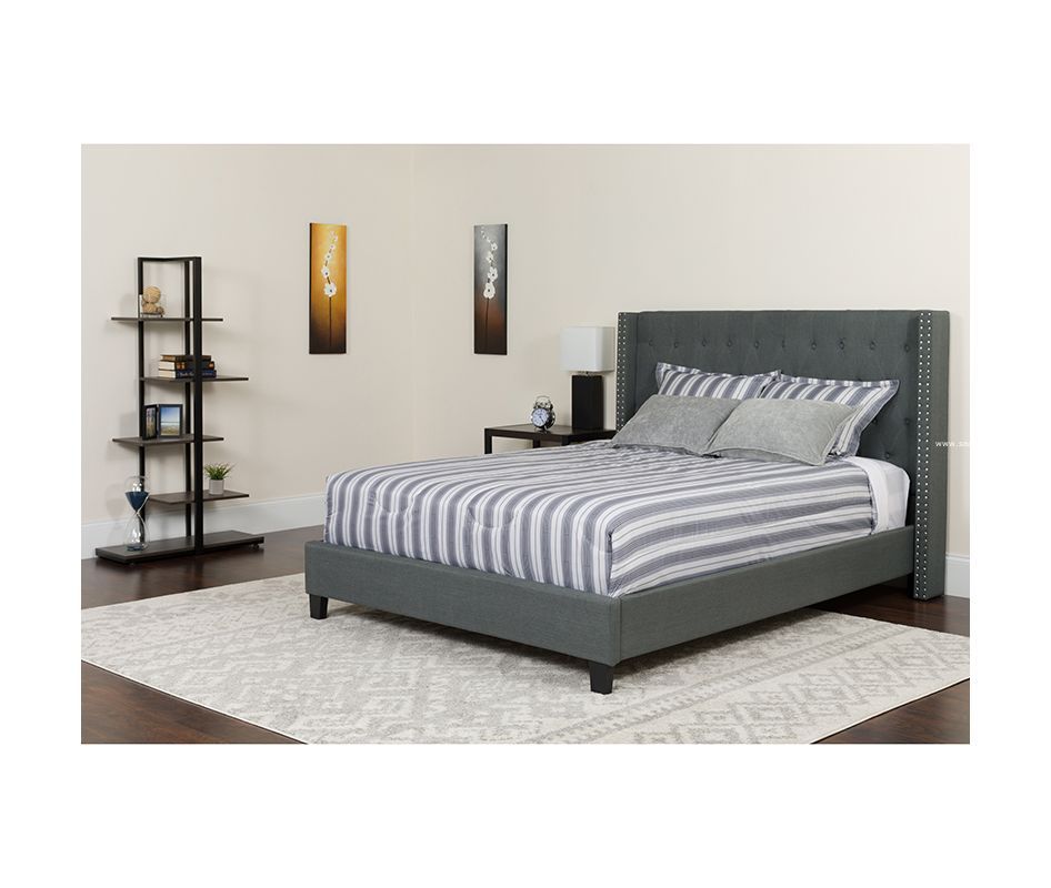 Look no further, you've found the bed of your dreams at a price no one will believe. This gorgeous platform bed will keep your bedroom looking fresh for years. This beauty is adorned by nailhead trimming on the protruding sides and has a button tufted panel headboard. The headboard has a decent amount of height to prop yourself up against it. No footboard means you have easy access to make up your bed. The low base frame provides you with an open concept feel. Settle in for a peaceful night of resting atop the pocket spring mattress supported by 45 wooden slats that are designed to support the mattress without the use of a box spring. The 12" pocket spring mattress provides superior motion isolation and supports the contours of your body. The interior make-up consists of pocket spring coils and foam. The mattress instantly starts expanding once you cut the plastic and will return to its original shape in 2 to 5 days. You deserve a job well done for selecting such a breathtaking bed that will give your space the uplift that you've been yearning for.