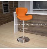 Contemporary Orange Vinyl Adjustable Height Barstool with Curved Back and Chrome Base