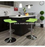 Contemporary Green Vinyl Adjustable Height Barstool with Solid Wave Seat and Chrome Base